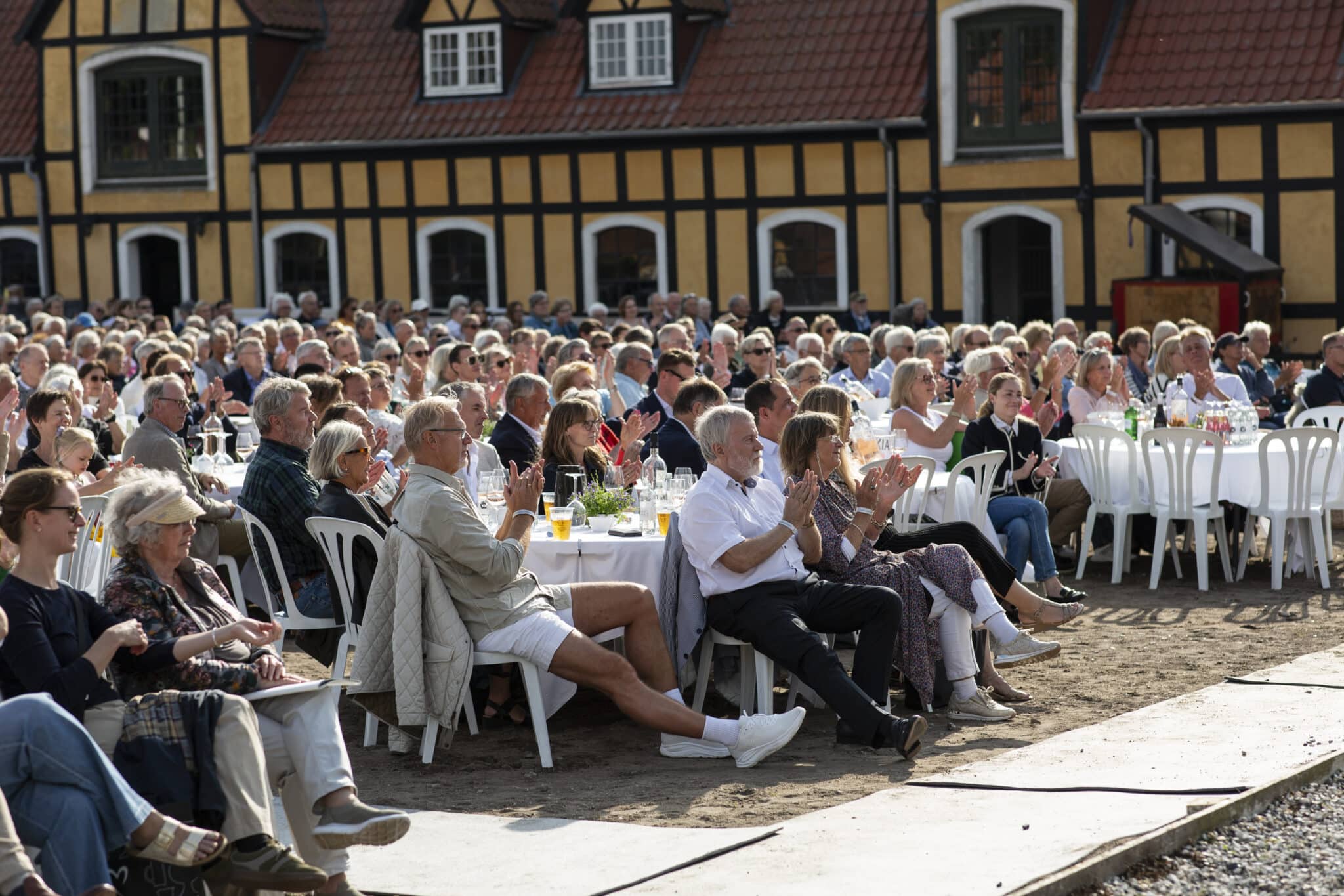 Foran scenen vil der være borde reserveret til inviterede gæster. Der vil være mulighed for at købe snacks og drikkevarer i foodtrucks samt tilkøbe en langbords- eller gourmetmiddag efter forestillingen.